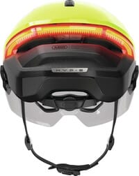 Integrerte, oppladbare front- og baklys: Lys permanent montert foran og bak på hjelmen for økt synlighet i trafikken – kan lades med en USB-C-ladekabel