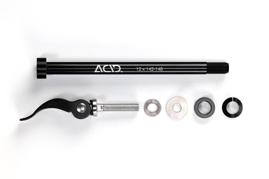 ACID Thru Axle passer til alle sykler med 142 og 148 mm standard og 1 mm gjengestigning. Kompatibel med alle standard tilhengerfester. ACID Thru Axle er designet for å tåle de tøffeste forhold og kan også brukes på tilhengergodkjente terrengsykler, fettsykler, landeveissykler og e-sykler.