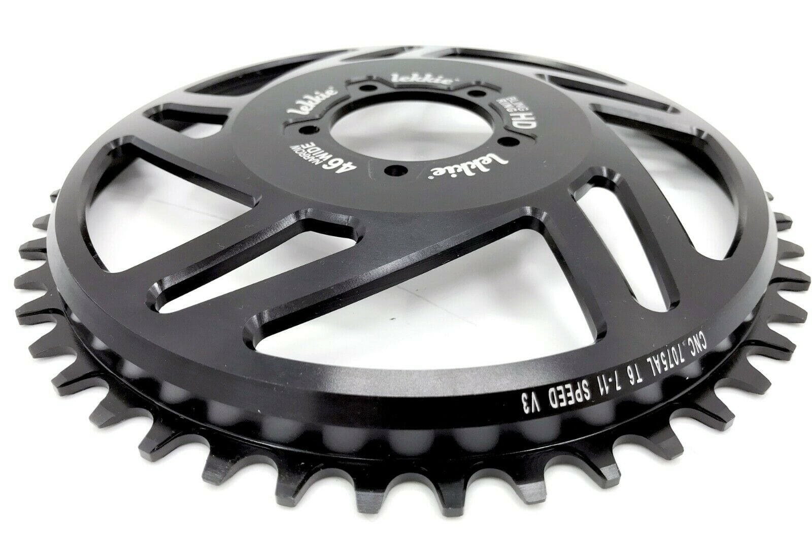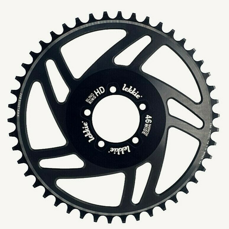 Lekkie BLING RING chainrings are the most sought after accessory for the Bafang BBSHD mid-drive systems. All aspects of performance and durability were considered during the design process with the utmost emphasis on quality and finish. As it is the only front chainring, a narrow/wide tooth pattern is used to eliminate chain derailment and increase durability by thickening the teeth. Made of anodized 7075 T6 hardened aluminum it is super strong, durable and ultra-light, weighing only a few ounces instead of the heavy 1.3lbs of the original steel chainring. And they look great!