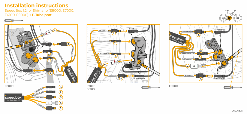 Compared to previous versions, this new product also plugs into the engine's E-Tube port. It is therefore necessary that the e-bike motor in which you are going to install the new version of SpeedBox for Shimano has one free E-Tube port. In case you do not have a free E-Tube port in the motor, please select “+E-Tube Port” variant.