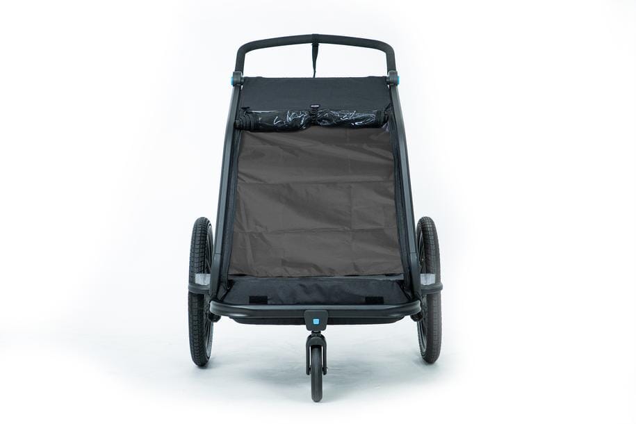 CUBE Kids Trailer Double CMPT er den perfekte følgesvennen til hverdags. Dette sofistikerte multitalentet er en sykkelhenger og barnevogn i ett. Et stort insektnett som strekker seg over fronten og sidene holder insektene ute uten å påvirke sirkulasjonen av frisk luft. Barn kan sove i fred takket være solskjermen for å beskytte mot det sterke lyset. Sprutbeskyttelsen gjør at du kan fortsette å sykle selv når det er gjørmete og vått ute mens barna holder seg tørre. Sete- og ryggpolstring og hodestøtte med hjelmlomme sørger for at de minste rir komfortabelt. Individuelt justerbart fjæring kan tilpasses terreng og lastevekt. For enda mer fleksibilitet er tilhengeren kompatibel med Jogger Kit (tilgjengelig separat).
