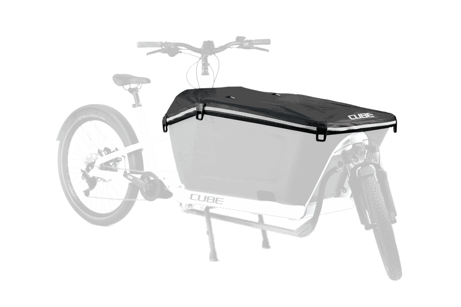 Ingen garasje? Ikke noe problem! CUBE Boxcover har deg dekket. Holder vann og skitt ute av lasteboksen til CUBE CARGO HYBRID med CUBE Seat CARGO. Inkluderer en seksjon som åpnes og rulles tilbake, slik at Boxcoveret kan fungere dobbelt som værskjold når du transporterer barna i dårlig vær.