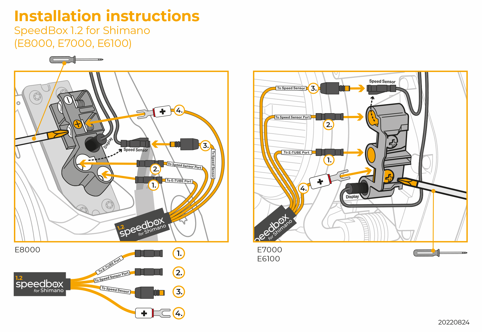 Compared to previous versions, this new product also plugs into the engine's E-Tube port. It is therefore necessary that the e-bike motor in which you are going to install the new version of SpeedBox for Shimano has one free E-Tube port. In case you do not have a free E-Tube port in the motor, please select “+E-Tube Port” variant.