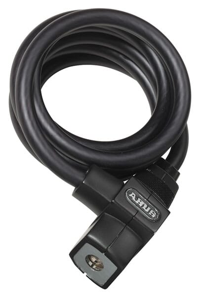 9.5 mm thick, high-quality steel cable with PVC coating to protect against paint damage. ABUS automatic cylinder with drill protection and user-friendly reversible key. Two keys included.