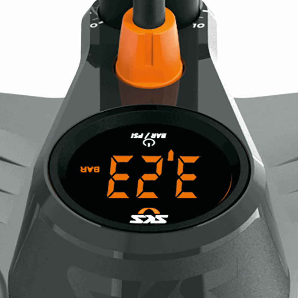 Nøyaktig: SKS AIR-X-PLORER DIGI 10.0 gulvpumpe imponerer med en høykvalitets LED digital trykkmåler. Den førsteklasses sensorteknologien garanterer høy målenøyaktighet og leverer presise lufttrykkverdier opp til 10 bar. Andre funksjoner inkluderer det myke håndtaket med håndtaksrom for dekkspaker, den ekstra lange høytrykksslangen og «MV EASY» MULTI VENTILE-hodet for alle ventiltyper.