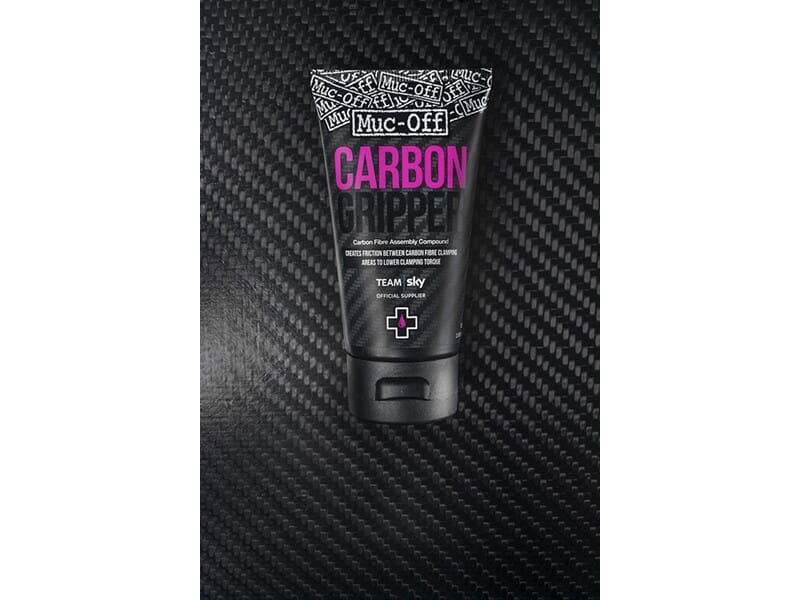 Utviklerene i Muc-Off har funnet frem til en monteringspasta for karbon-komponenter som de er fornøyd med. Carbon Gripper monteringspasta bør benyttes ved montering av karbon sammen med aluminium (f.eks karbon setepinne i aluminiumsramme) og karbon med karbon, men er trygg og bruke til alle materialer. Pastaen sørger for friksjon mellom komponentene slik at karbon delene ikke glipper, og man slipper derfor og overstramme klemmer. Dette resulterer igjen i lenger levetid for komponentene dine.