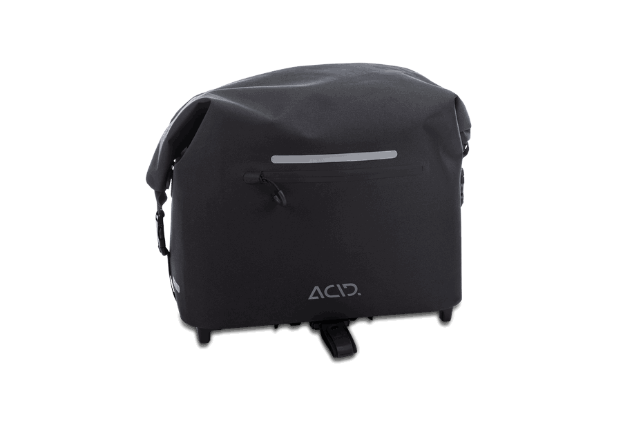 The robust ACID Front Carrier Bag PRO 40 HIC RILink protects your valuables reliably from wind and weather, thanks to its waterproof construction. The reflectors ensure good visibility in poor lighting conditions. The ACID RILink guarantees a quick and secure attachment to the Front Carrier HIC RILink on your bike. With the shoulder strap, the bag can go with you where you like.
