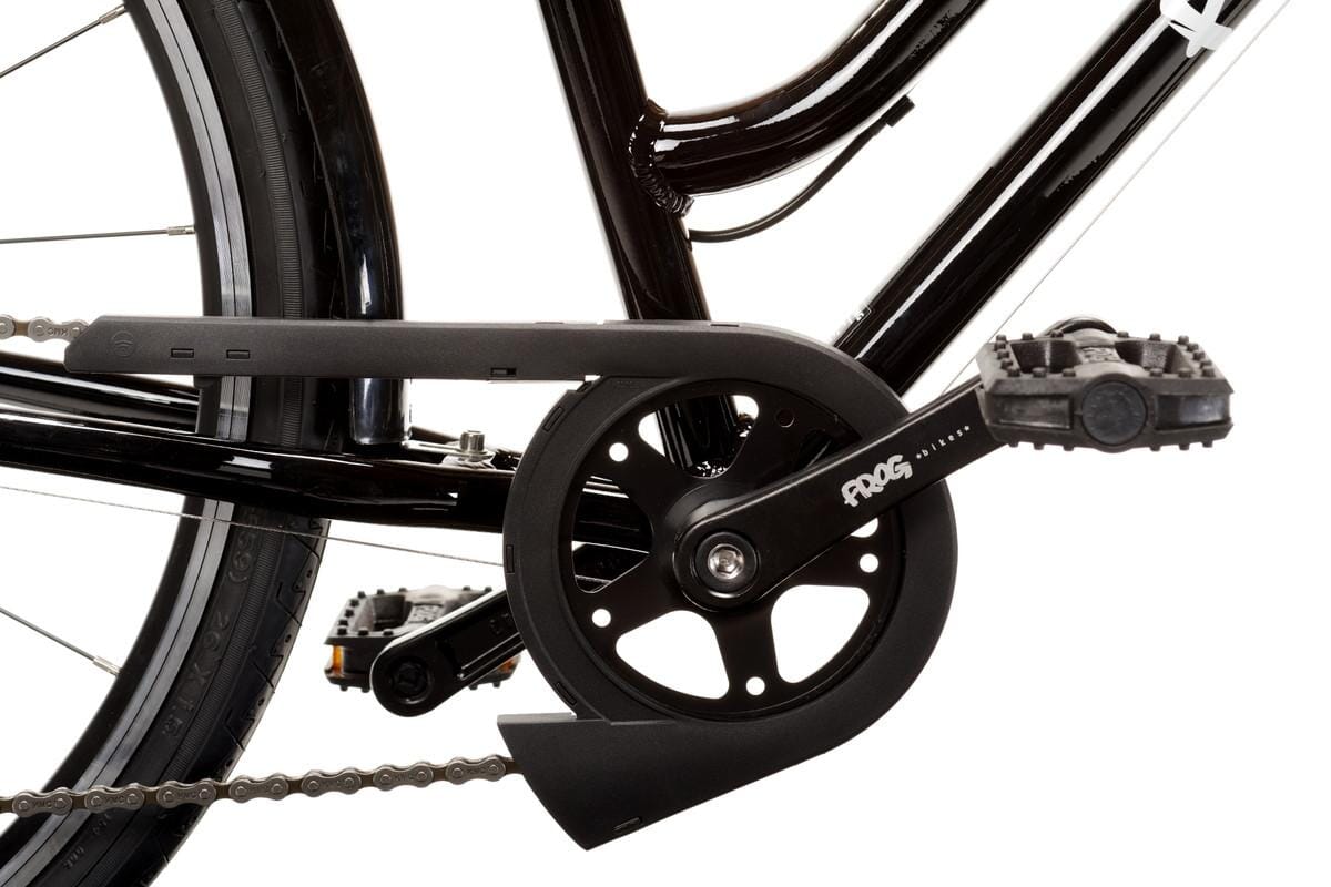 Sykkelen er utstyrt med 8-delte, barnespesifikke gir med FrogFit Technology®, som gjør girskift intuitive og enkle. Sammen med Frog sine patenterte krankarmer (laget av 75 % resirkulert aluminium), som reduserer avstanden mellom pedalene, får barnet et mer effektivt og komfortabelt tråkk – også på lengre turer.