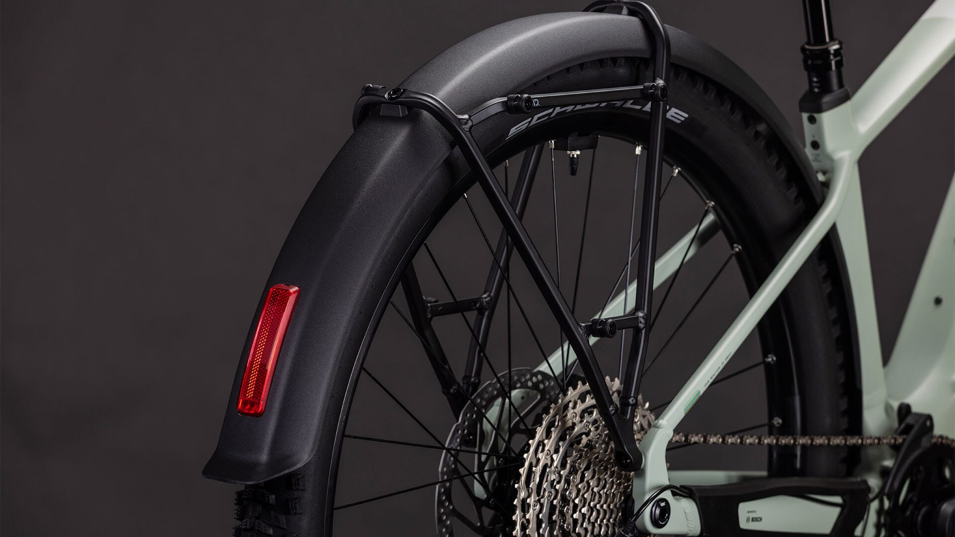 Med komplett utstyrspakke – inkludert skjermer, bagasjebærer, integrerte lys og støtte – er Reaction Hybrid Pro FE klar for det meste. Med 800Wh batteri og kraftig Bosch CX-motor er det eneste spørsmålet hvor turen går videre.