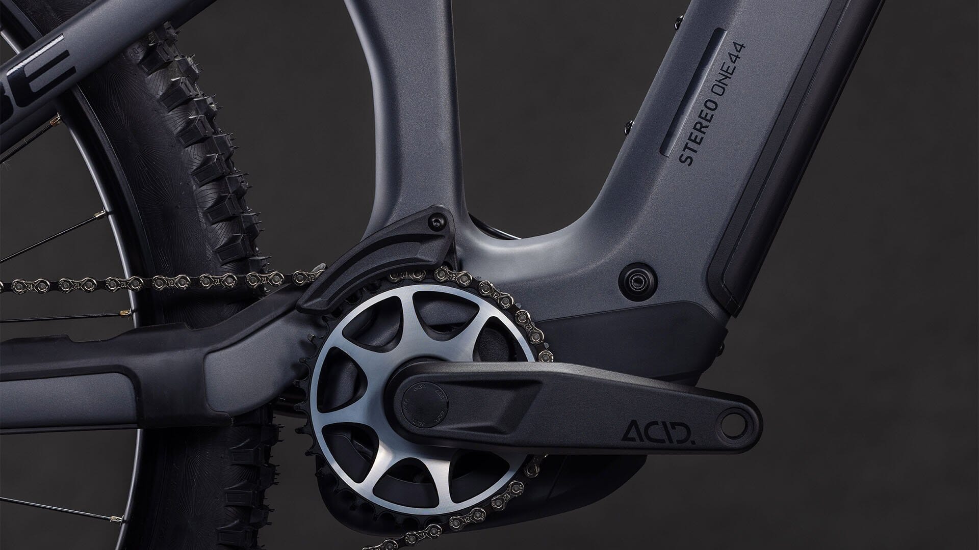 En virkelig god sykkel handler om detaljer – og Stereo Hybrid ONE44 HPC er full av smarte løsninger. Den integrerte kabelføringen fremhever de rene linjene i hovedtriangelet av High Performance Carbon, mens et vinkeljusterbart styrelager lar deg tilpasse kjøreegenskapene nøyaktig etter dine preferanser. En Direct Mount-kjedeguide holder drivverket stabilt, og den elegant integrerte Bosch-kontrolleren i overrøret sammen med Purion 400-displayet gir deg rask oversikt over den kraftige Bosch CX-motoren og 800Wh PowerTube-batteriet. Med 150 mm vandring foran og 140 mm bak er den klar for selv de tøffeste stiene. UDH-dropout gjør rammen fremtidsrettet, og med Size Split finnes det et bredt utvalg størrelser som passer de fleste syklister.
