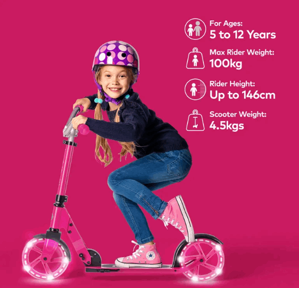 Den sammenleggbare low rideren er tilgjengelig i tre forskjellige farger og er perfekt for barn som liker å cruise rundt komfortabelt med vennene sine. Den brede, buede styre og 200mm hjul tilbyr maksimal komfort og en utrolig kjøreopplevelse. Med de nye LED-hjulene blir cruising en uforglemmelig opplevelse og tiltrekker seg alles oppmerksomhet. Gi barnet ditt friheten til å cruise og utforske verden på en ny måte!